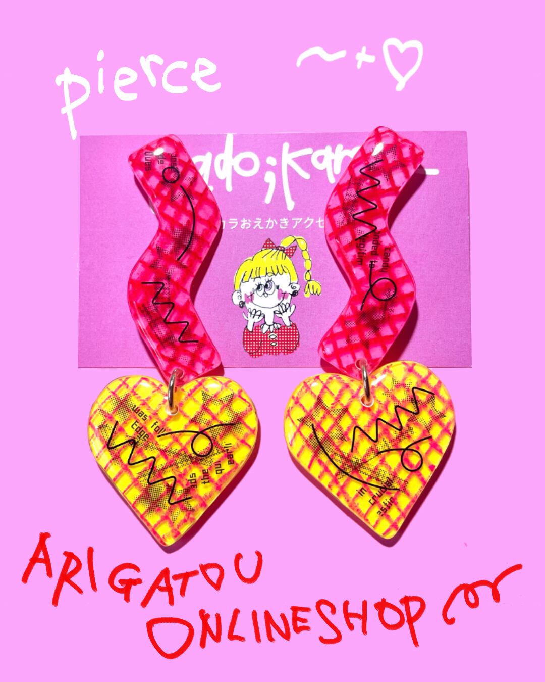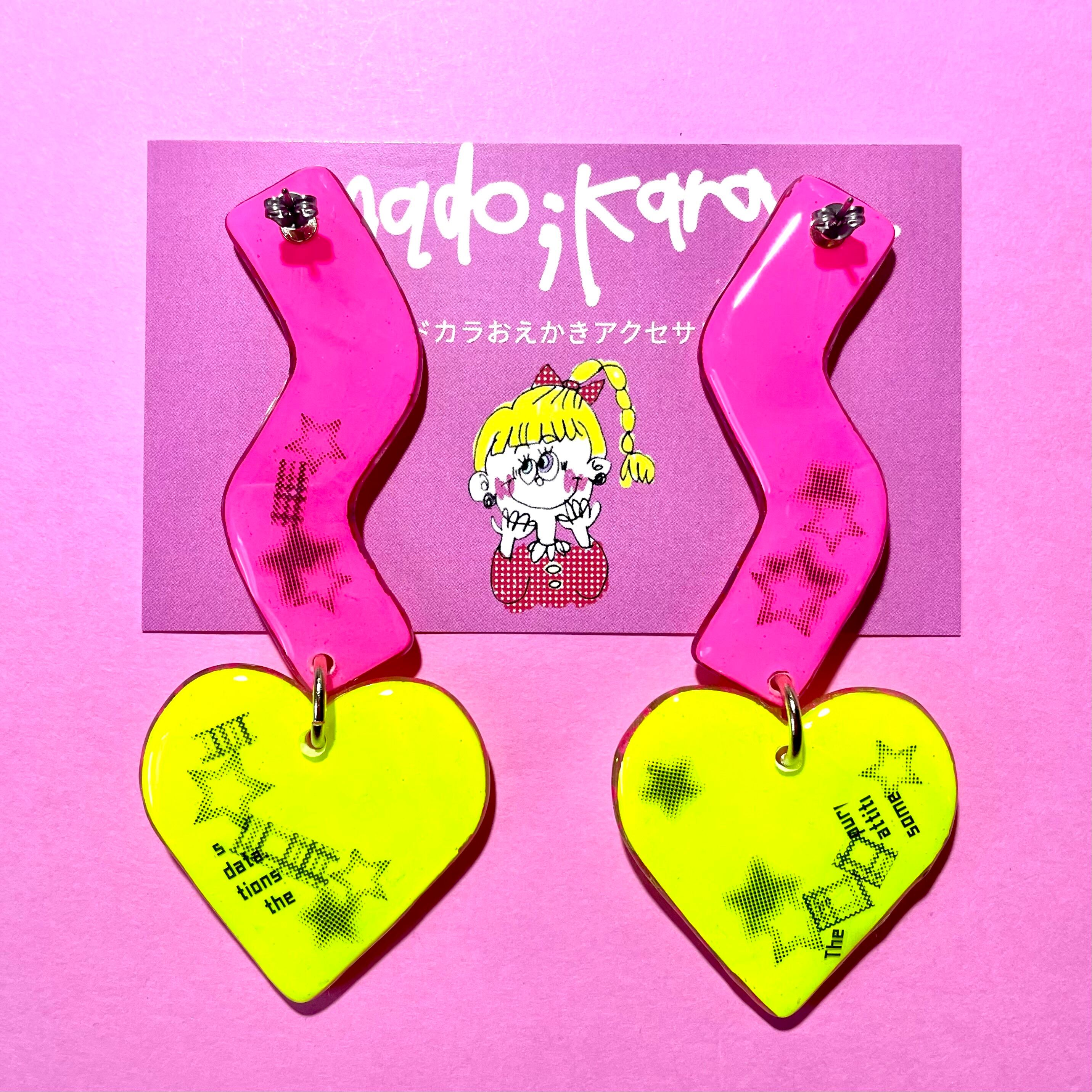 〜 + ♡ うねうねとハートのピアス(ピンク / ネオンイエロー)
