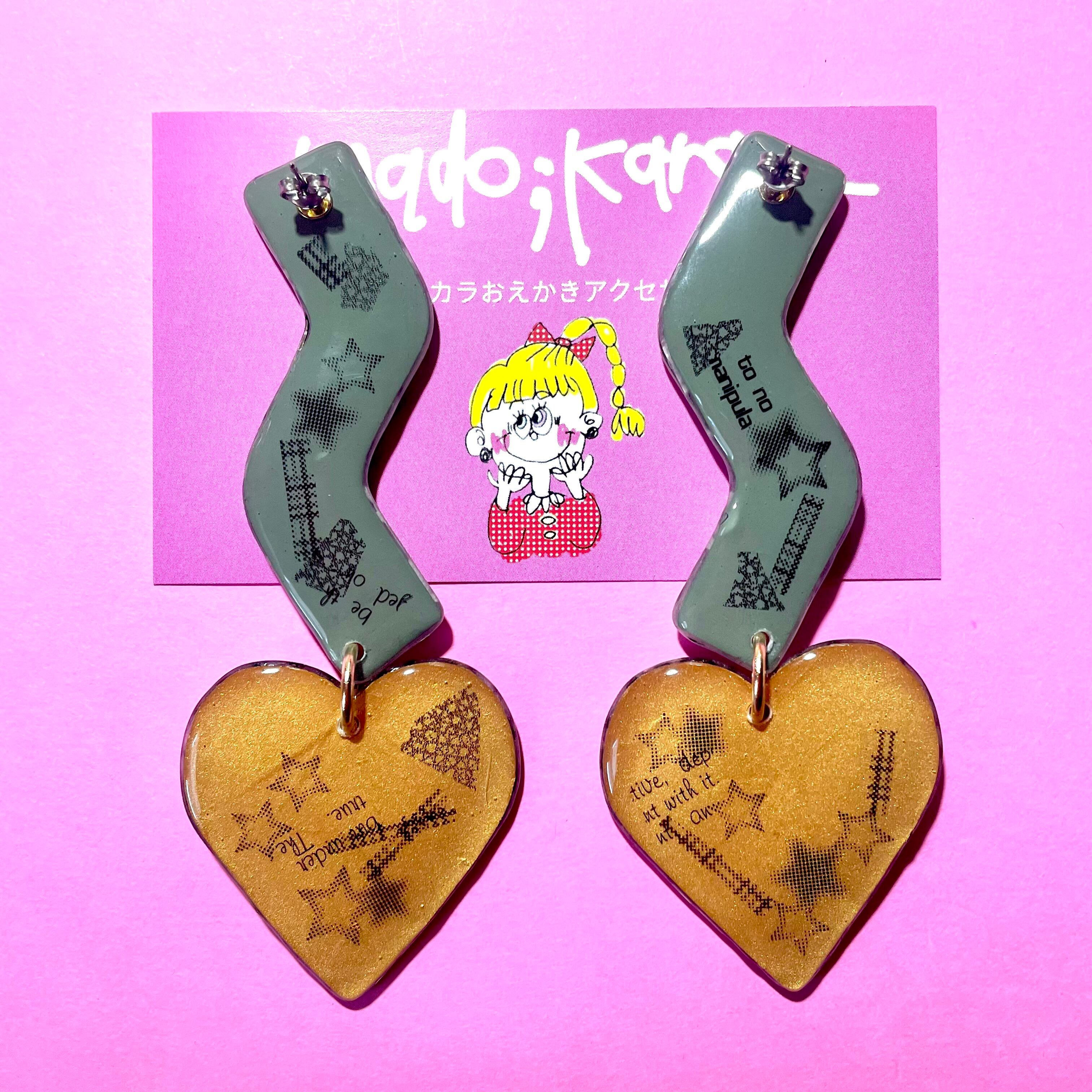 〜 + ♡ うねうねとハートのピアス(チャコールグレー / ゴールド)