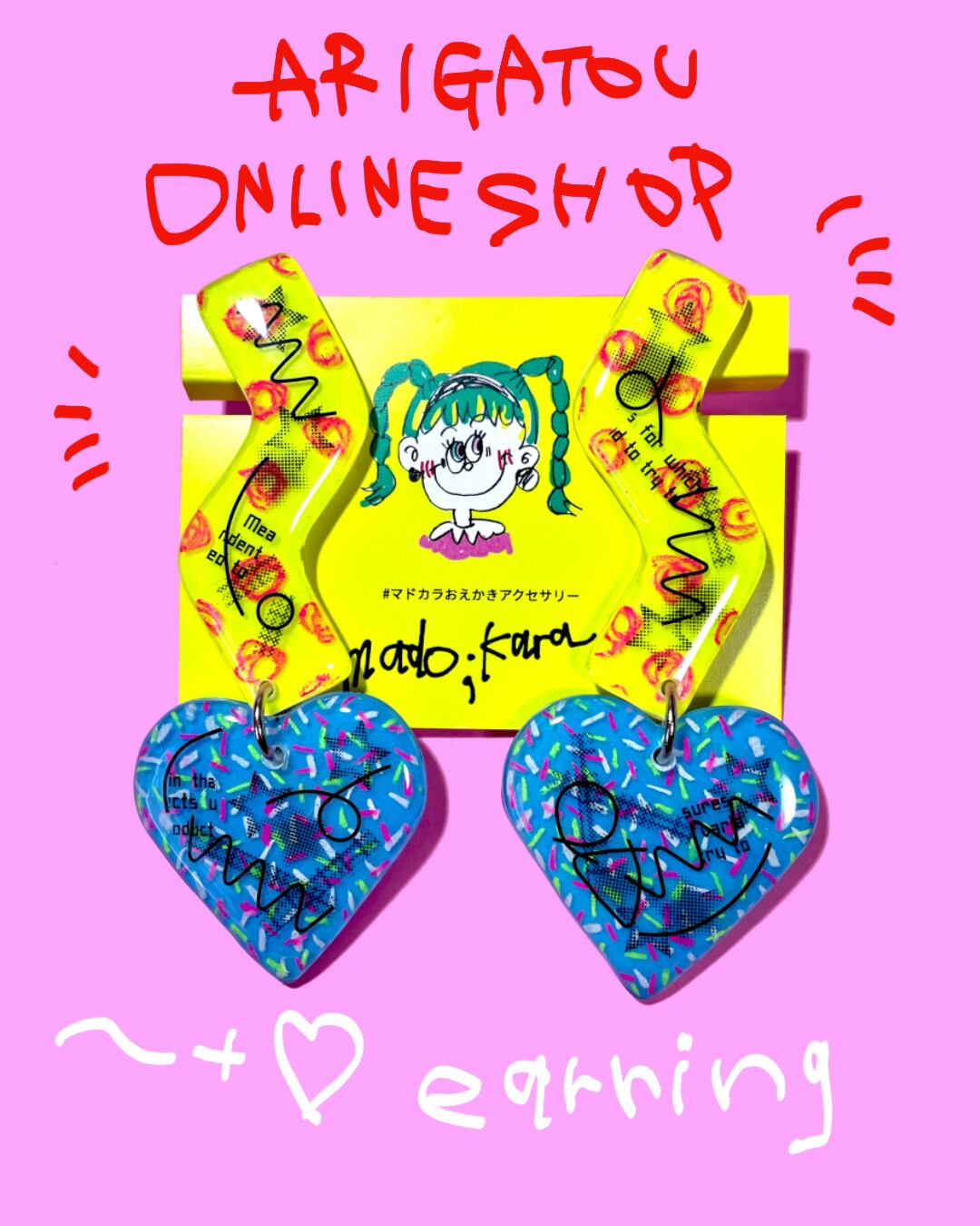 〜 + ♡ うねうねとハートのイヤリング(ネオンイエロー / ブルー )